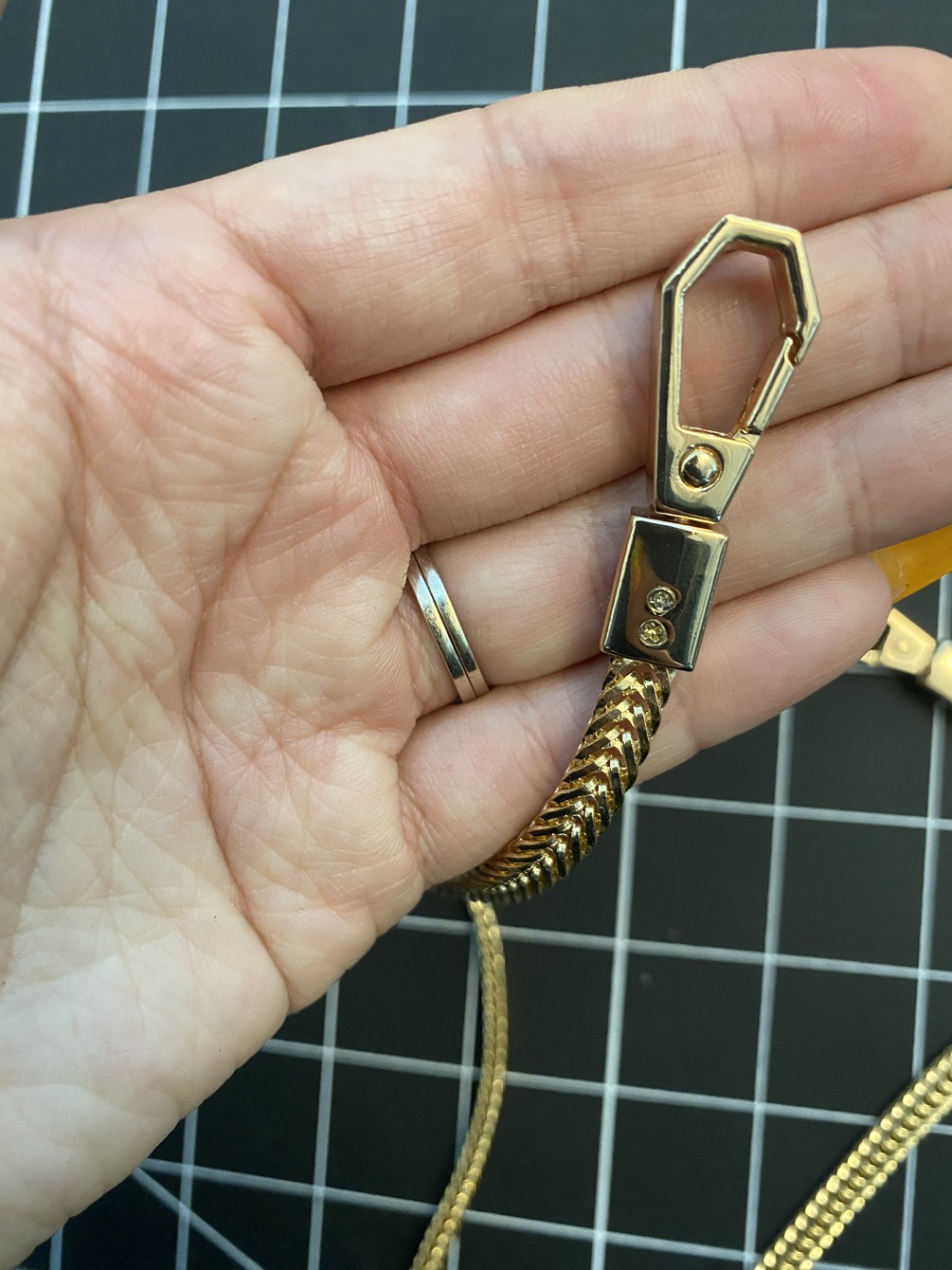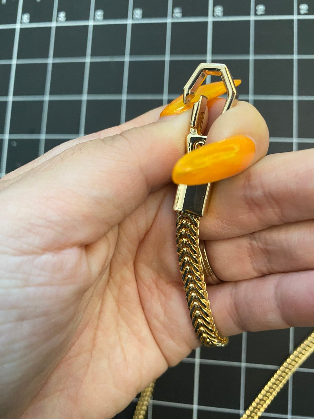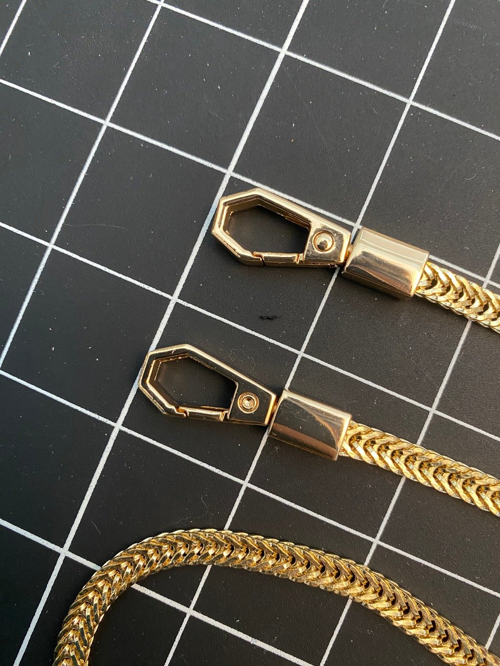 46” long gold plated chain with swivel and spring clasps at both ends.